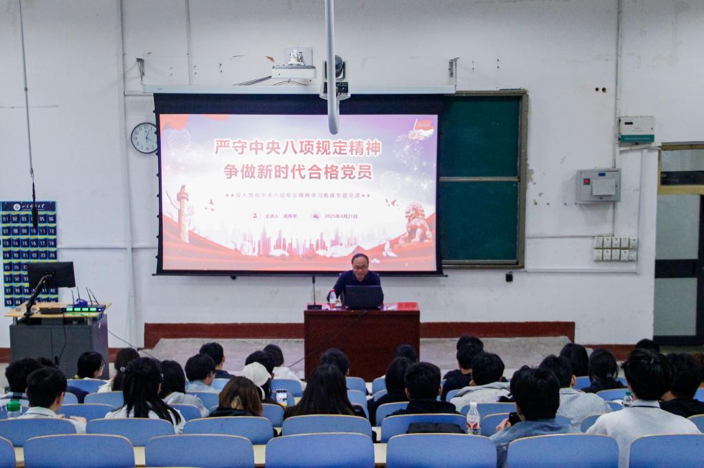 4月21日,kaiyun体育网页登录入口党委书记高尚宇在1A107为学院学生党员和第42期入党积极分子,讲授“严守中央八项规定精神,争做新时代合格党员”专题党课。
