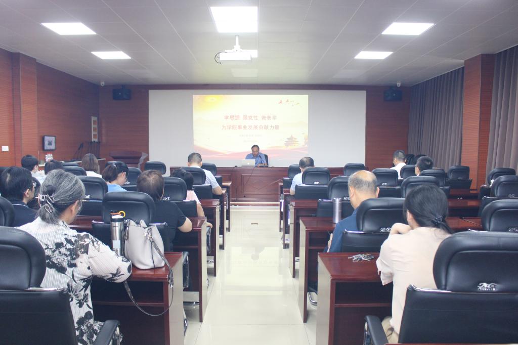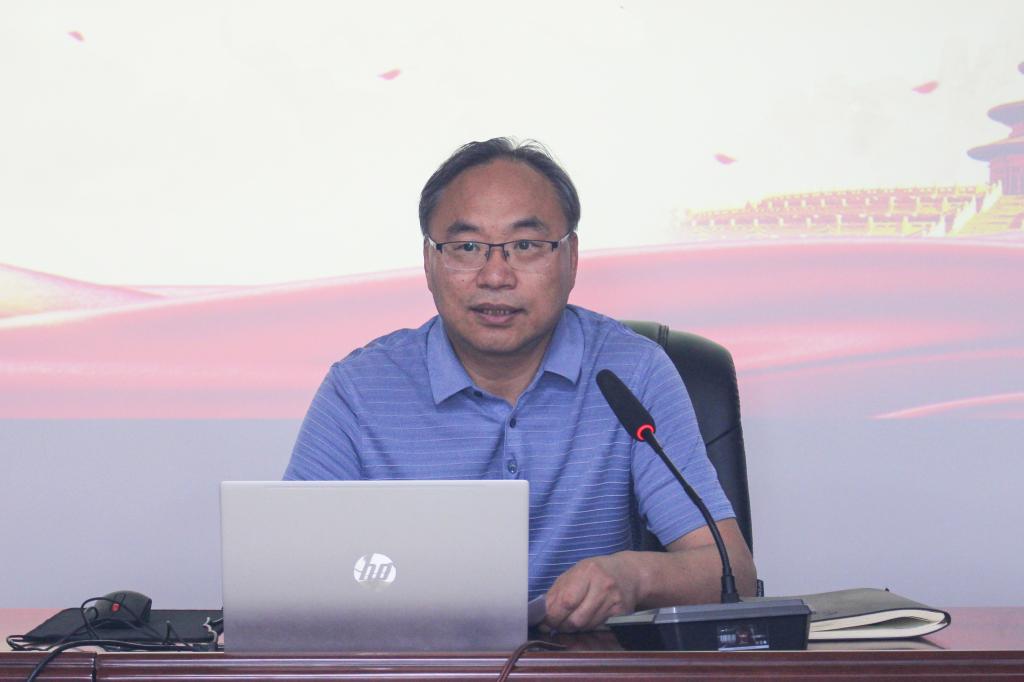 6月9日,kaiyun体育网页登录入口党委书记高尚宇在二号楼201会议室为学院全体教工党员和学生党员代表讲授“学思想 强党性 做表率 为学院事业发展贡献力量”专题党课。