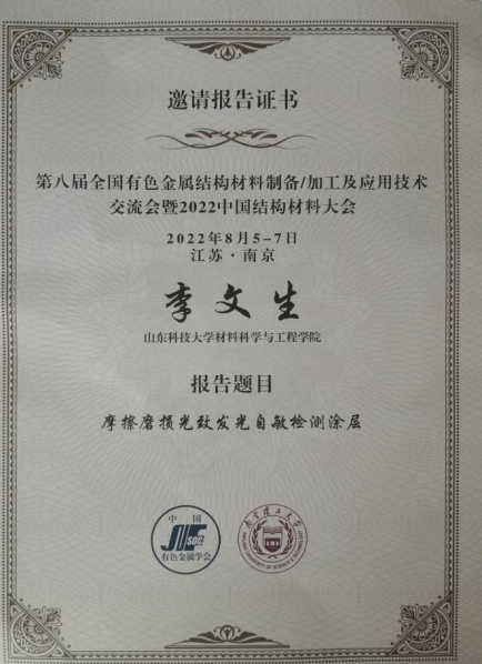85-7,由中国有色金属学会、南京理工大学主办,中南大学、北京航空航天大学等高校联办,买球官方网站、江苏大学、中国计量大学等单位共同办的第八届全国有色金属结构材料制备/加工及应用技术交流会暨 2022 中国结构材料大会江苏省南京市召开,买球官网师生受邀作邀请报告并交流发言。