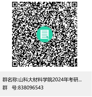 5.预计“全国硕士研究生招生网上调剂意向采集系统”将于3月底开通,“全国硕士研究生招生调剂服务系统”将于4月8日开通,请有调剂意愿的考生密切关注“中国研究生招生信息网”(网址:https://yz.chsi.com.cn/)。有意愿调剂到买球官网的考生,从即日起可扫描下方二维码加入2024年山科买球官网研究生调剂群(838096543)。