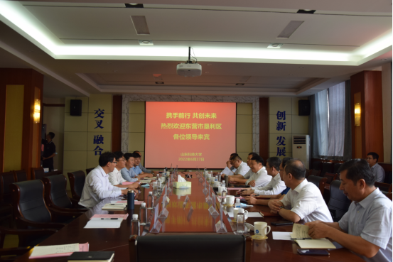 王晓东强调东营市垦利区地理位置优越,高度重视高科技人才引进及产业升级,并对校地合作、校企合作模式进行了深入交流探讨。