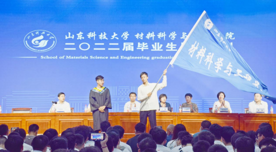 典礼上本科生毕业生代表韩润昊发言,他表示将牢记惟真求新的校训,传承恩师的教诲,勇做走在时代前列的奋进者;研究生毕业生代表马国梁发言,他向学院老师的殷切教诲和悉心指导表示衷心感谢,希望买球官网全体在校生能够将建设学院的大旗继续传承下去。在现场“材通穹宇,料定天下”的欢呼声中,韩润昊将学院院旗传递到在校生代表甄宇扬手中。