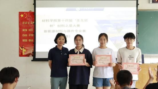 在激烈的角逐后,经公正的评分,“海底小分队”获一等奖,“铁道游击队”获二等奖,“可可爱爱冲星队”获三等奖,“新能源队”获优秀奖,新能源材料与器件2021-2班罗锡璐同学为本届材料之星。(通讯员:常宴玉)