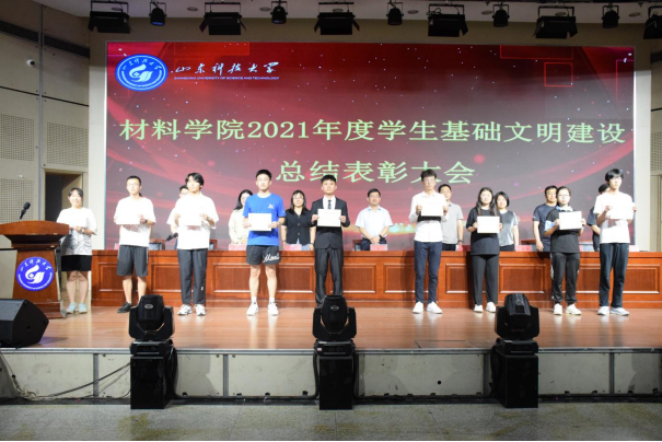 为表彰先进、选树先进典型,强化学生自律意识,营造安全有序、文明和谐的学习生活环境,6月6日下午,买球官网于大学生活动中心二楼报告厅成功举办2021年度学生基础文明建设总结表彰大会。学院党委副书记兼副院长李建楠、学生工作部公寓管理中心于海峰老师、全体辅导员,校学监会主任姜锦潭,院学生会、自律会以及各班级学生干部,受表彰先进集体和个人代表参加了此次大会。会议由辅导员林振德主持。