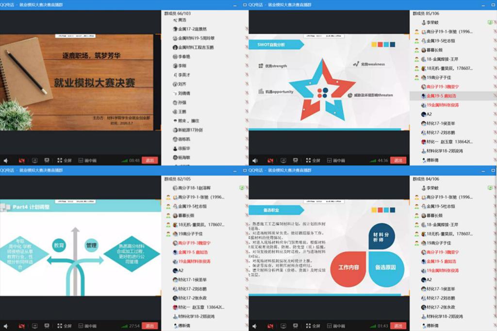 5月7日下午,买球官网学生会就业创业部,以QQ群屏幕分享的方式举办了“逐鹿职场,筑梦芳华”就业模拟大赛决赛。学院学生代表王子涵、杜玉晓、王昌胜担任此次比赛评委。