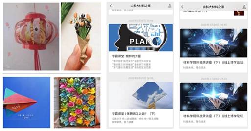 行远心不远,线上活动丰富多彩。在落实“停课不停学”、确保同学们居家学习效果的基础上,为丰富同学们的课余文化生活,学院还积极利用线上渠道开展丰富多彩的各类文化活动。大艺团致辞献歌,向抗疫英雄表达敬意;开展旧物改造活动,增强同学们的环保意识;组织线上配音大赛,弘扬爱国主义红色精神,定期开展学霸课堂、考研论坛等,不断加强学风建设......各类丰富多彩的文化活动,既展现了同学们的青春风采,又对同学们的健康成长、全面成才起到了推动作用。