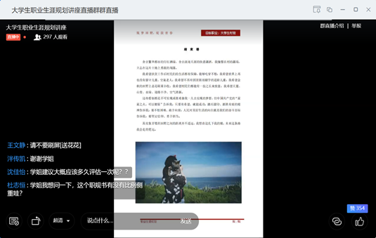 随后,参与同学们就评估频率、职规书的比例侧重等问题进行了交流互动。(通讯员:顾思汉)