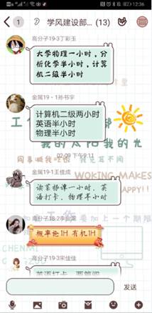 除以上活动之外,学生会还积极动员各班级督促同学们认真参与网课学习,开展具有班级特色的学风建设活动。有的班级开展“我爱记单词”英语单词打卡活动,有的班级开展每日学习内容分享活动,有的班级则邀请成绩优秀的同学分享课程知识和学习方法,起到了互相督促、互相鼓励的效果。