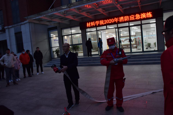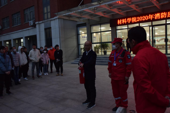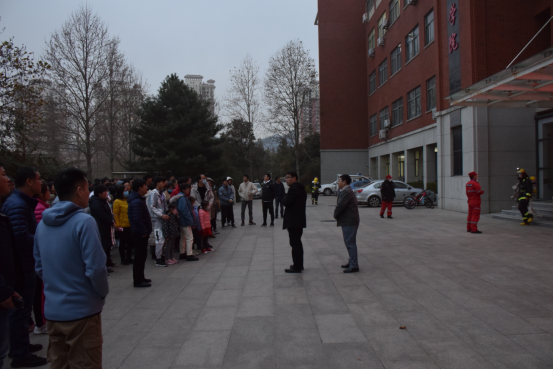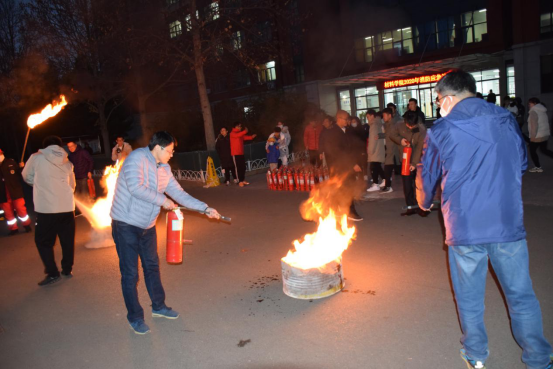 活动开始,申兆亮强调了消防安全的重要性,要求学院师生要增强消防安全意识,严守消防法和学校相关规章制度,提高应急处置能力。下午4时30分,烟雾弥漫引发火灾报警,全体师生按照消防安全应急处理预案要求,以湿毛巾、衣服捂住口鼻、躬身前行,沿着安全通道有序撤离到安全集合区域。同时,振邦保安公司消防队快速赶赴火灾现场,对火情进行紧急处置。随后,安全管理处消防科陈浩向全体师生演示了使用干粉灭火器及消防栓的正确使用方法,并组织了师生进行灭火演练。
