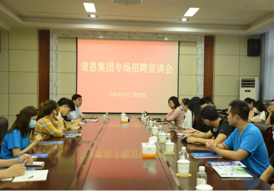 9月25日下午,买球官网在J2-434成功举办道恩集团专场招聘宣讲会,学院党委副书记兼副院长李建楠,道恩集团人力总监刘丽丽、人力专员王雪俨、青岛分公司研发经理赵凤雯及毕业班研究生参加了本次宣讲会。