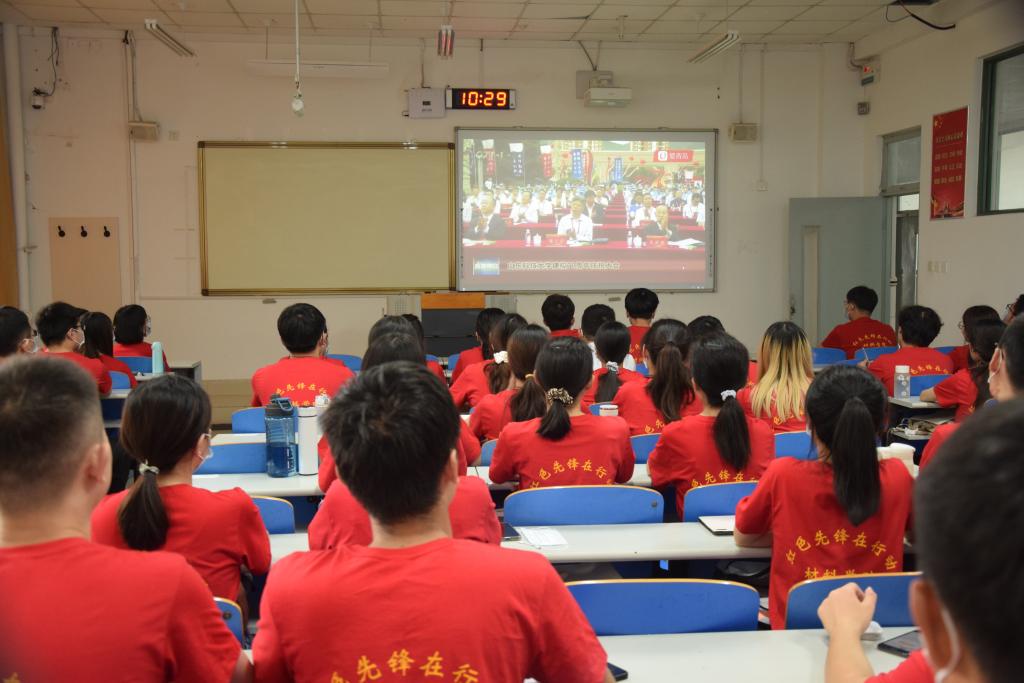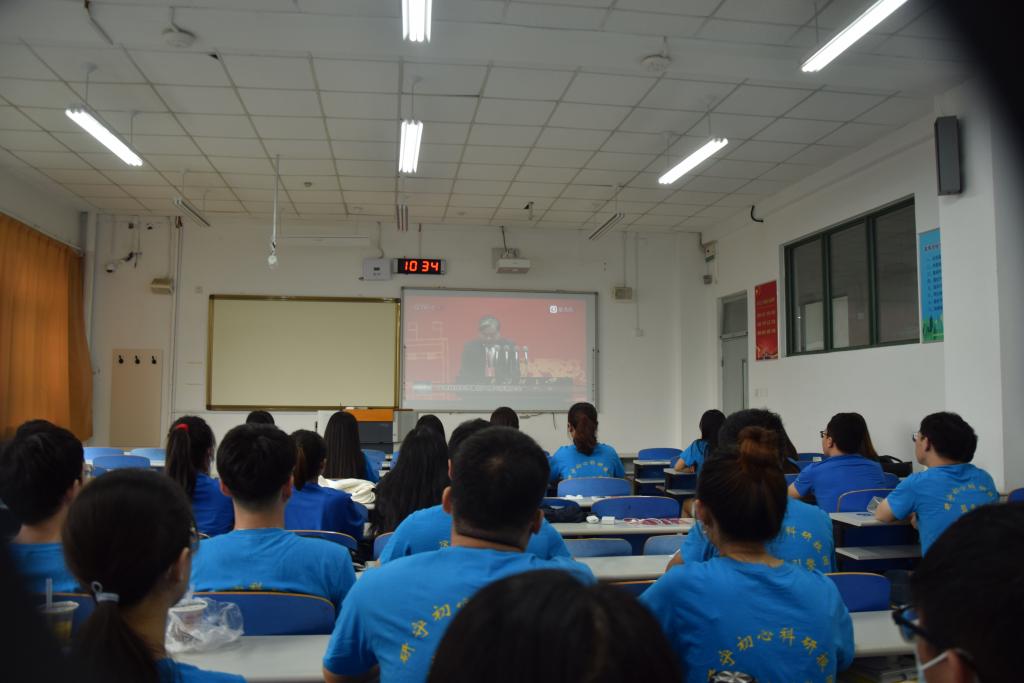 学院会议室集体观看大会直播