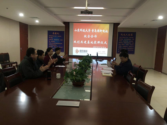 12月10日,买球官网与青岛国轩电池有限公司在公司2号会议室举行授牌仪式。国轩电池公司生产总监薛兵,综合部经理刘洋,综合部张娜,买球官网学工办主任、团委书记马韶霞,新能源系姚树玉教授,新能源系主任韩野,新能源系副主任徐国纲,出席仪式。仪式由刘洋主持。
