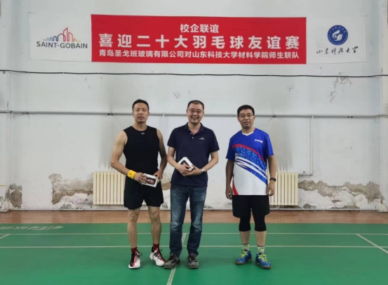 应青岛圣戈班玻璃有限公司邀请,9月23日,买球官网申兆亮一行8人赴青岛圣戈班玻璃有限公司举行了羽毛球友谊赛。