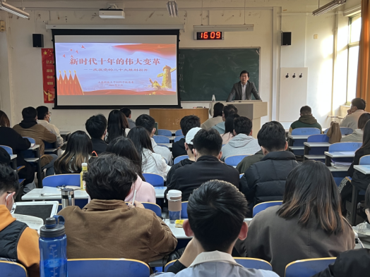 11月1日下午,买球官网党委副书记兼副院长李建楠以《新时代十年的伟大变革》为题围绕学习贯彻党的二十大精神进行授课。介绍了新时代十年取得的瞩目成就,从脱贫攻坚、全面深化改革等七个方面具体介绍了我国经济社会发展的历史性成就,深刻感受马克思主义在中国的强大生命力。
