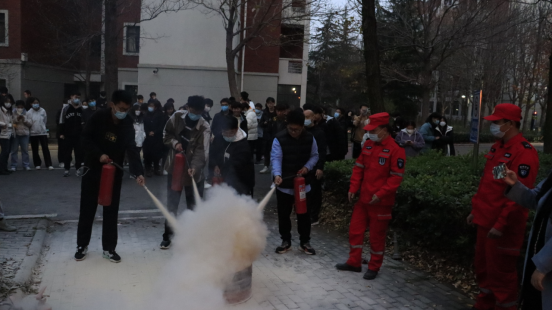 演练开始前,安全管理处副处长王春暖从维护消防安全、保护消防设施、预防火灾、报告火警的义务、参加有组织的灭火工作等方面详细介绍了消防工作五项义务。王春暖老师结合实际案例以及我校面临的消防安全问题重点讲解了各类火灾类型以及防范自救知识。随后,安全管理处消防科陈浩老师详细讲解了灭火器正确使用方法、消防水袋的铺设以及消火栓的连接使用等方面的消防知识。最后,在专业消防人员的指导下,同学们四人一组进行了灭火实战演练并初步掌握了灭火器的使用。