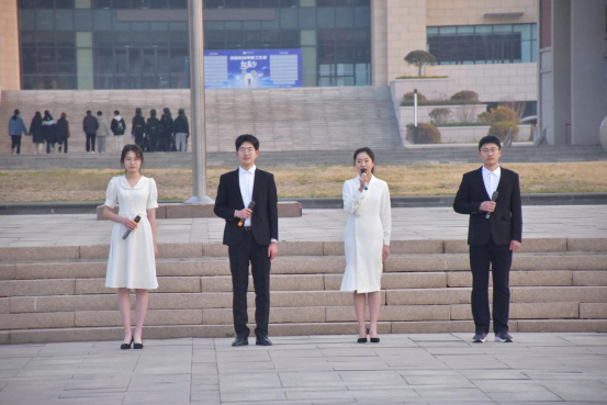 3月27日,买球官网在泰山广场举行“礼赞二十大,青春驻华章”升旗仪式,全体辅导员及全体在校生参与此次活动。