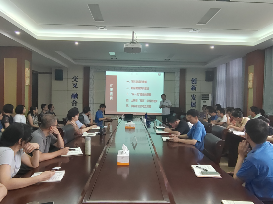 为进一步凝聚学科建设共识,提升学院教师教学科研能力,7月12日,学院邀请青岛理工大学发展规划与学科建设处副处长陈建强博士参加青椒成长论坛,为学院全体教师作学科建设工作报告。会议由学院党委书记申兆亮主持,全体教职工参加了会议。