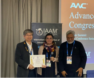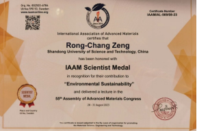 我校买球官网曾荣昌教授受邀此次会议,并作了题为“Enhanced in vitro Degradation Rate on Bioresorbable Alloy by Microbial Ingress in Presence of Glucose”(葡萄糖环境下微生物侵入生物可吸收合金并提高降解率)的报告,详细介绍了课题组在可降解生物镁合金领域所取得的成绩。在报告结束之后,国际先进材料学会(IAAM)授予曾荣昌教授“国际先进材料协会科学家奖章”(IAAM Scientist Medal)以表彰他在“环境可持续发展”领域做出的突出贡献。