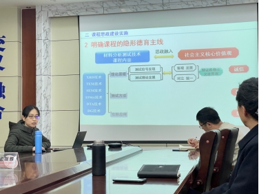 迟静首先以《材料分析测试技术》课程思政建设为题,重点介绍了该课程教学过程中课程思政的设计思路、实施方法、课程特色和教学效果,分享了课程思政项目申报、实施及结题验收等环节的丰富经验。此外,迟静结合自身的访学经历,介绍了香港城市大学的教育教学、科学研究、校园环境、访学收获和感受等。