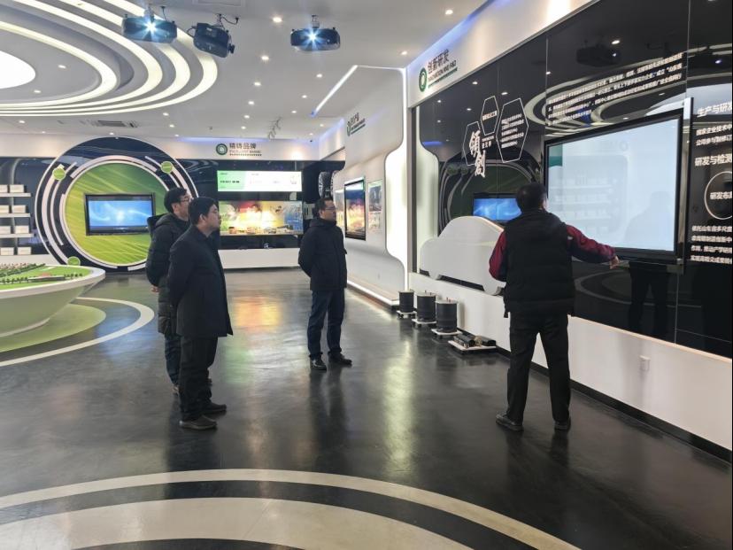 在威海金合思化工有限公司,李建楠一行与公司相关负责人进行了座谈交流,公司负责人介绍了企业的发展经营情况,双方就科研合作、人才培养等方面内容进行了详细沟通交流。座谈结束后,公司负责人陪同参观了企业实验室和生产车间。