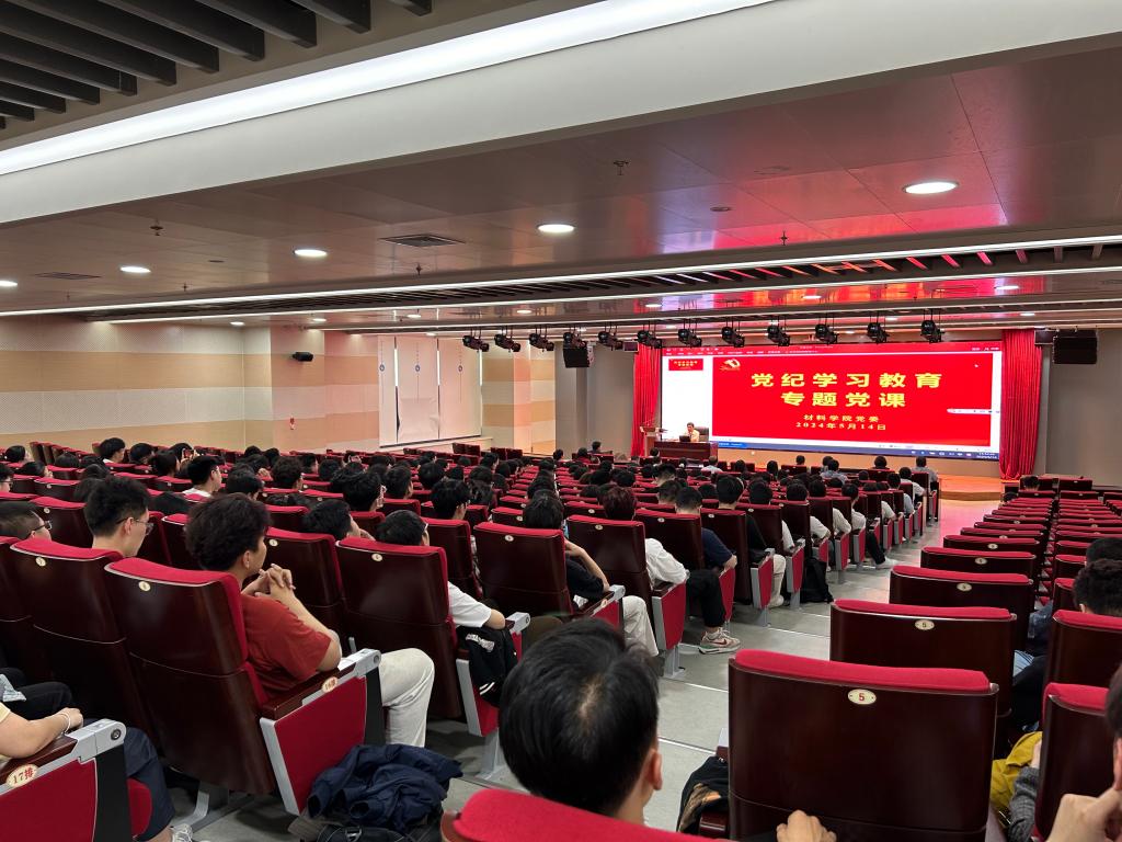 2024年5月14日下午在图书信息中心求新讲堂,买球官网党委书记申兆亮以“学条例 守党纪”为主题为学院全体党员上专题党课。