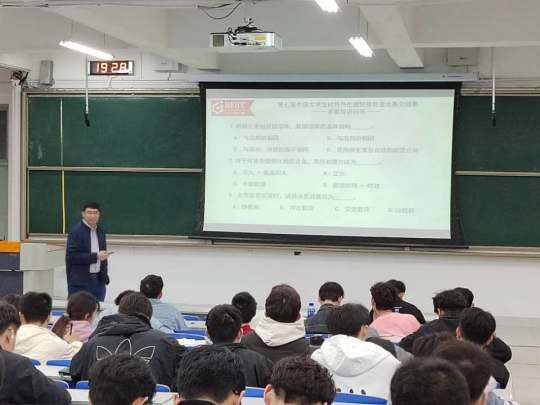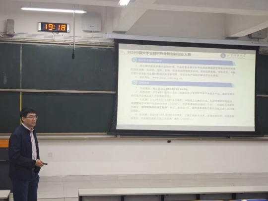 4月21日,为鼓励材料学学生积极参与科技创新活动,培养创新思维和解决问题的能力,买球官网在J14教学楼开展了热处理(见习)工程师培训与材料热处理创新创业赛宣讲会。会议由金属材料工程专业系主任孙金全教授作为主讲。