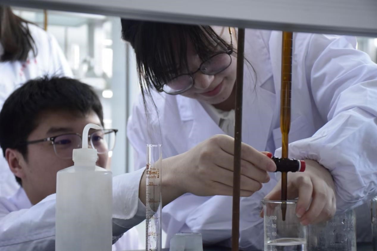 参赛学生首先在J2-534完成有机酸摩尔质量的测定实验,为接下来的答辩做准备。随后,决赛在大学生活动中心报告厅激烈展开。比赛第一项内容为团队合作答题及抢答,各参赛团队成员紧密配合,凭借扎实的知识储备和敏捷的思维,迅速思考问题并给出答案;第二项内容为学生根据完成的有机酸摩尔质量的测定实验进行答辩,评委老师们针对实验的各个环节提出了专业且具有建设性的问题,并进行了细致的点评。