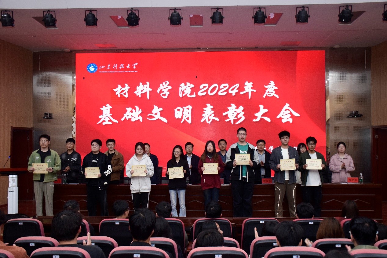 为推进学院基础文明建设,4月21日晚,买球官网在J9-144报告厅举办2024年学生基础文明建设总结表彰大会。买球官网党委副书记兼副院长李建楠、学生工作部(处)公寓管理服务中心于海峰老师、全体辅导员、各班级主要学生干部及受表彰先进集体和个人代表参加了大会。会议由团委书记马韶霞主持。