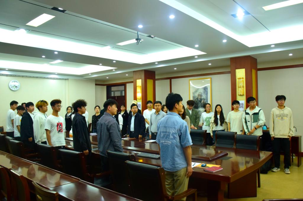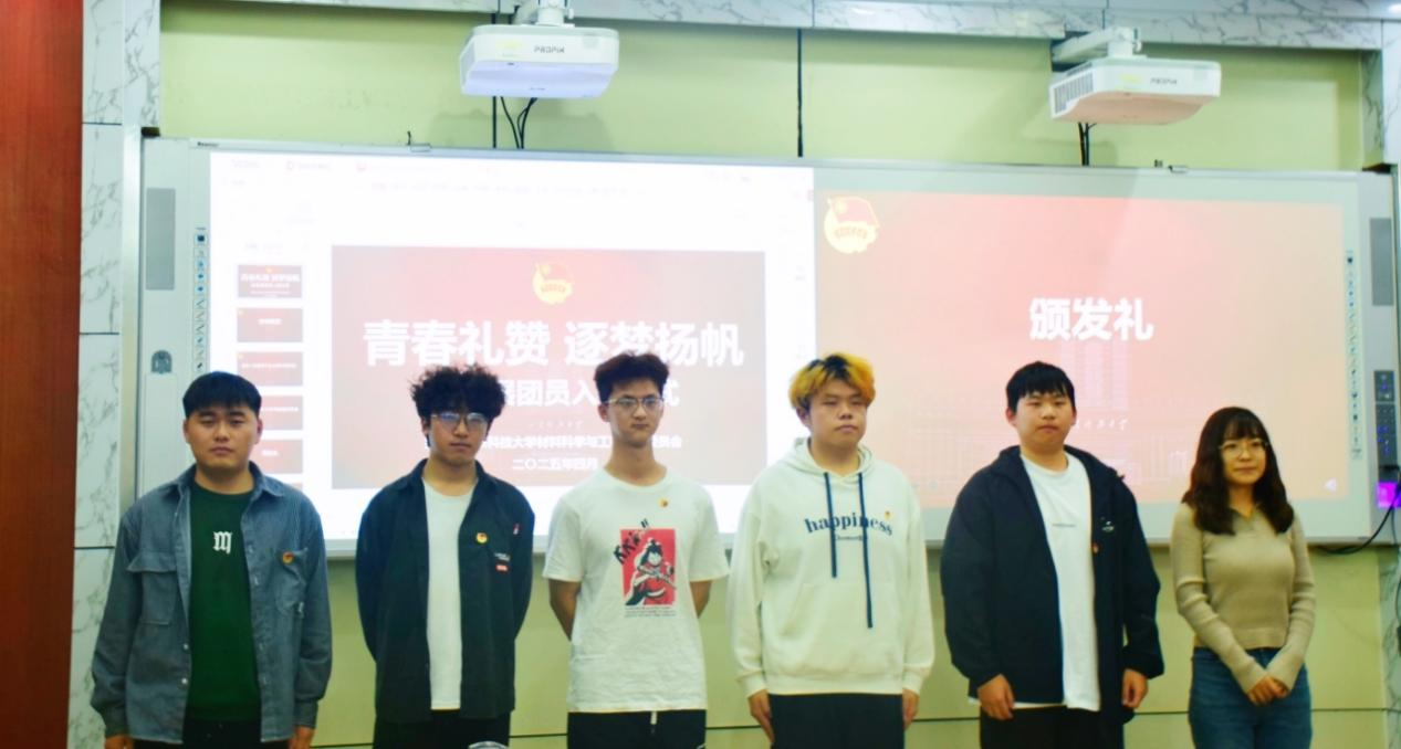 4月28日下午,买球官网在J2-434举行2025年上半年新发展团员入团仪式。买球官网党委副书记兼副院长李建楠、团委书记马韶霞、辅导员钟文建、许珍颖、练晓娟出席仪式,优秀团员代表和新发展团员共同参加,优选辅导员韩恒飞主持。