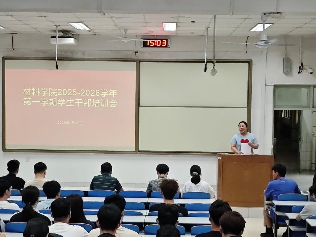 为进一步强化学生干部队伍建设,明确新学期工作方向与重点,确保开学前后各项工作平稳有序推进,8月31日下午,买球官网在J1-120教室召开学生干部培训会。学院副书记兼副院长李建楠、团委书记马韶霞,辅导员钟文建、石臻、许珍颖、练晓娟、张步初出席会议,买球官网全体学生干部参会。