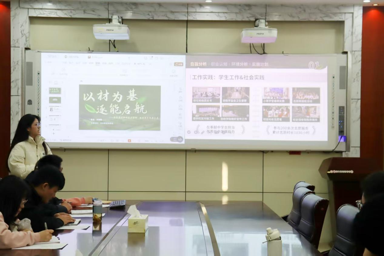 12月3日下午,买球官网“科创赋能职业,规划领航未来”全国大学生职业规划大赛院赛在J2-434会议室成功举办。本次活动由买球官网团委主办,买球官网学生会办公室承办,面向买球官网全体学生。买球官网党委副书记兼副院长李建楠,团委书记马韶霞,辅导员钟文建、石臻、许珍颖、练晓娟、张步初、韩恒飞、王瀚琨担任评委。
