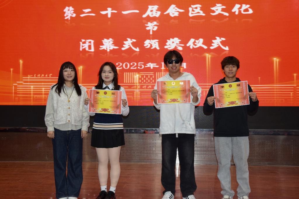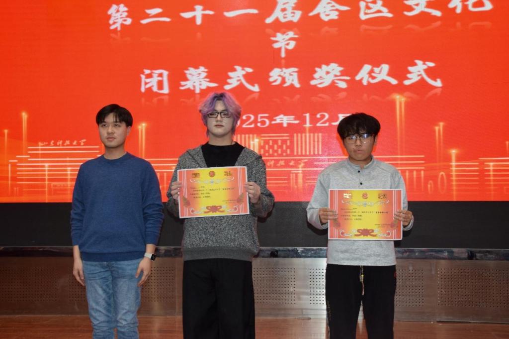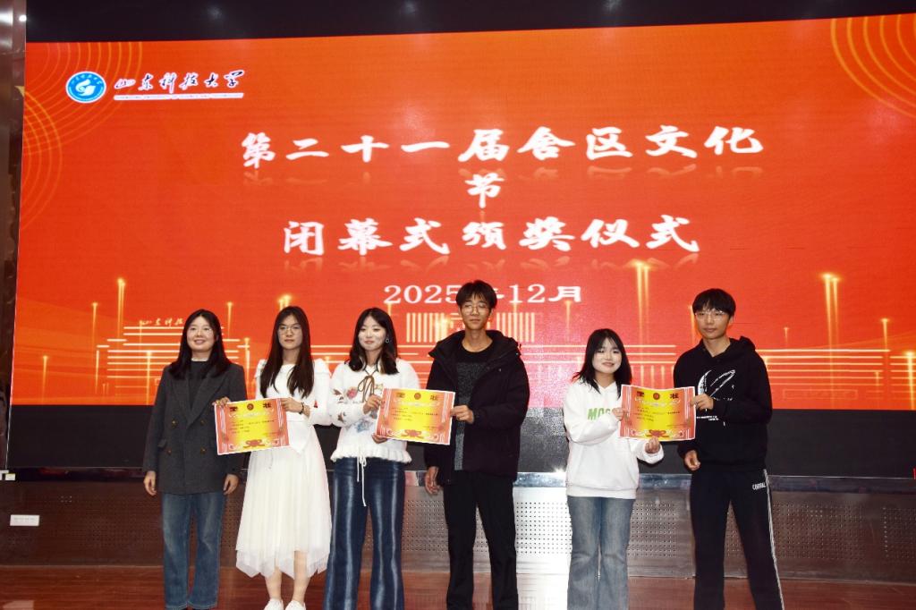 舍区文化节闭幕式上,李建楠作了闭幕致辞,他向同学们在舍区文化建设中的突出表现给予肯定,对学院公寓工作及同学们今后的学习生活提出了新的要求:一是要筑牢安全防线,守护平安家园;二是要践行文明公约,共建温馨家园;三是要增进团结互助,凝聚和谐家园;四是要提升综合素养,争当时代新人。闭幕式上,马韶霞宣读了本届舍区文化节“星级宿舍”及“优秀志愿者”名单,与会领导嘉宾为获奖集体和个人颁发荣誉证书与奖品。
