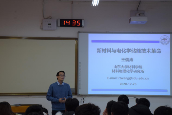 12月25日下午,买球官网邀请山东大学买球官方网站教授、买球官网无机非金属材料系2008级校友王儒涛,在J1-218举行了题为“新材料与电化学储能技术革命”的讲坛。
