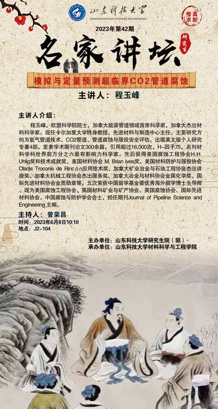 上一条:【名家讲坛】2023年第42期—欧盟科学院院士程玉峰院士作学术报告 下一条:曾荣昌教授课题组师生参加2023泰山科技论坛—海洋装备特种材料与防护技...