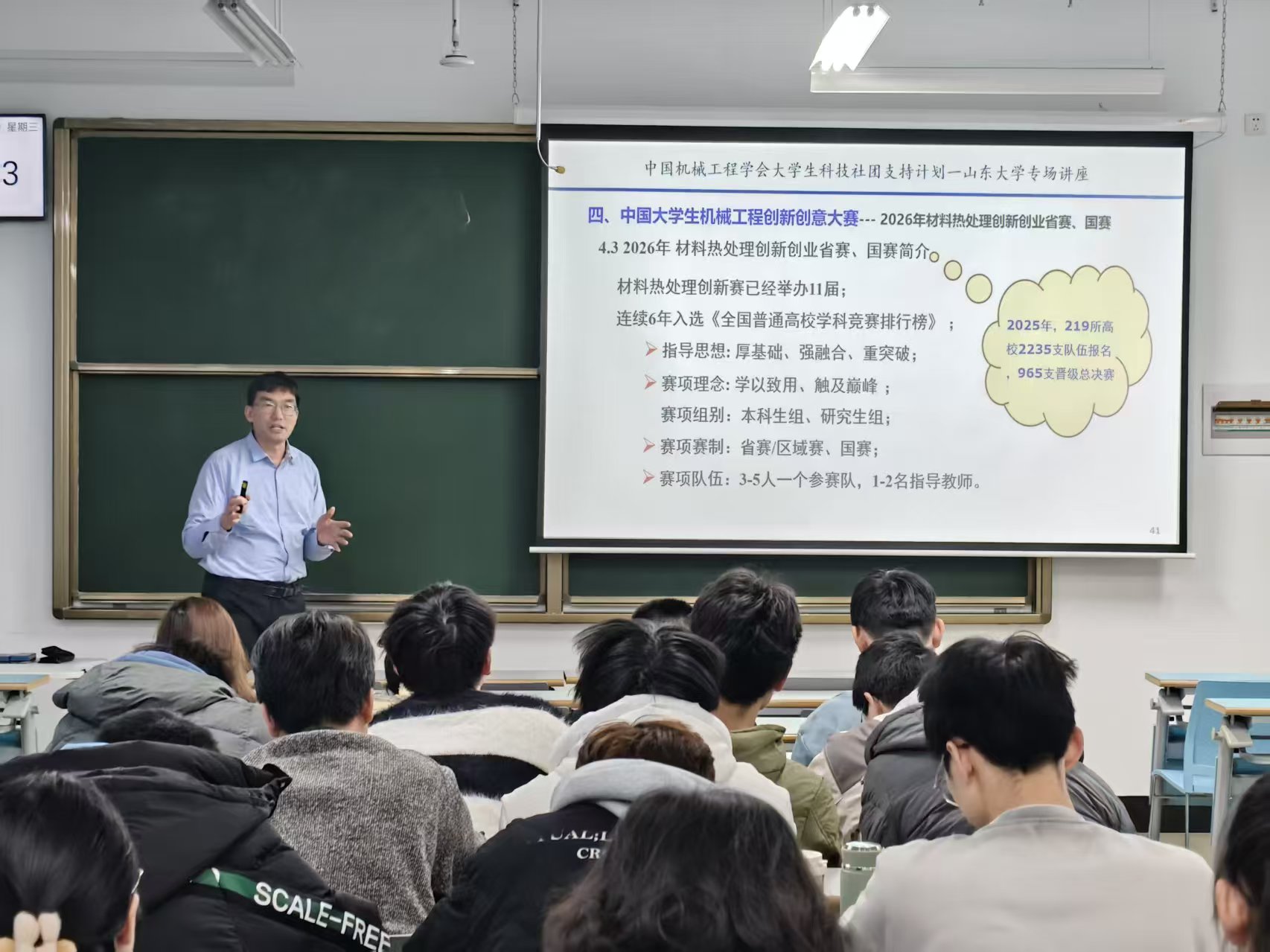 2025年11月19日,中国机械工程学会大学生科技社团支持计划——山东大学专场讲座由中国机械工程学会主办,山东大学买球官方网站承办。本次活动旨在通过大赛平台推进大学生工程教育与工业界的联系,提升大学生专业素养,增强工程教育人才培养对产业发展的适应性。活动由山东大学买球官方网站的谷国超老师主持。买球官网孙金全教授受邀担任主讲。