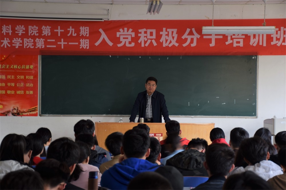 开班仪式后,校党委宣传部副部长秦晓钟为学员们讲授了入党积极分子培训班第一讲——《中国共产党的诞生和发展》。他从“为什么中国有共产党”、“为什么中国共产党生生不息”、“为什么中国成功革命大多由中国共产党领导”三个问题切入,讲解了鸦片战争、甲午中日战争、维新变法、辛亥革命、五四运动、秋收起义等历史事件,梳理了中国共产党的发展壮大脉络,证明了中国共产党的诞生是历史的选择,是社会的必然。