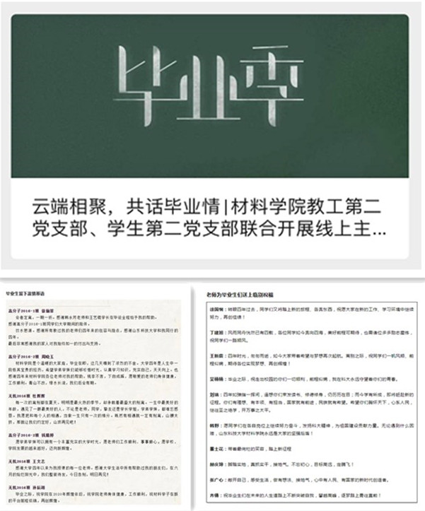 四年时光,匆匆而逝,在毕业生离校之际,买球官网教工第二党支部联合学生第二党支部开展了线上主题党日活动。师生们云端相聚,共话浓浓的毕业情。