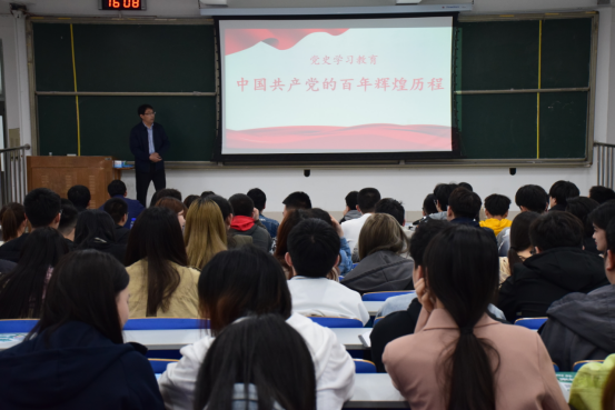 5月11日下午,买球官网党委书记申兆亮在J14-219开展党史学习教育专题宣讲。学院党委副书记兼副院长李建楠、全体辅导员、全体学生党员及主要学生干部参加了本次宣讲。
