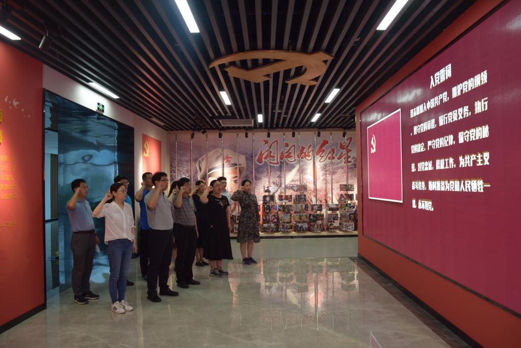 在参观过程中,同志们认真聆听讲解,不断驻足观看,体验耳目一新的党史学习教育。在“5G高新视频党史教育展厅”中通过“开天辟地”“改天换地”“翻天覆地”“惊天动地”四个篇章的卫星遥感、幻影场景等技术重温了党的百年光辉历程;在沉浸式多功能厅利用5G+16K精细超高清画面和沉浸双曲碗幕的裸眼3D视效,党员同志们穿越时间和空间,身临其境感悟了革命精神,体验了更加走心入心的党史学习方式。参观结束后,买球官网党员领导干部重温了入党誓词。