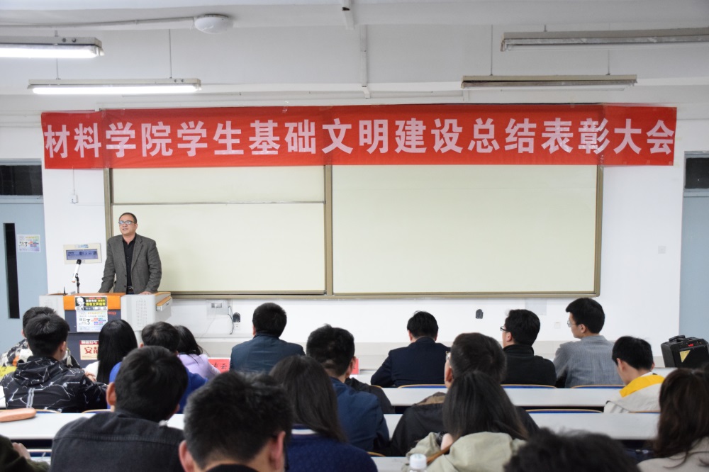 4月28日晚,买球官网在S1-103教室举行2018年度基础文明表彰大会。院党委副书记、副院长韩明臣,学生工作部公寓管理中心主任赵洋,团委书记马韶霞,全体专兼职辅导员,校自律会、楼管会、各兄弟学院自律会主要负责人,院学生会、自律会以及各班级学生党员、主要学生干部,受表彰先进集体和个人代表参加了大会。