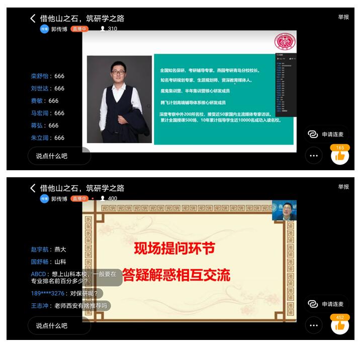 4月14日晚,买球官网通过钉钉直播平台成功举办“借他山之石,筑研学之路”线上考研论坛。活动由买球官网团委主办,学生会学风建设部和社会实践部承办。论坛邀请燕园考研李福振老师主讲,买球官网部分本科生参加。