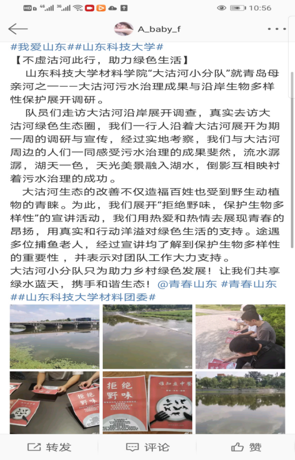 爱护环境,关注水污染后的恢复治理状况——大沽河环保小分队