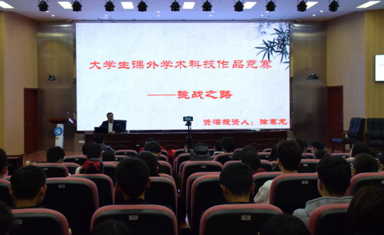 3月5日下午,由创新创业学院、校团委、国家大学科技园、学生工作部(处)主办,买球官方网站承办的创新创业大讲堂在J9-144报告厅成功举办。本次报告邀请青岛市科技风险投资公司副总经理徐赛龙先生作了题为“大学生课外学术科技作品竞赛——挑战之路”的报告。买球官网党委副书记兼副院长李建楠主持本次报告。