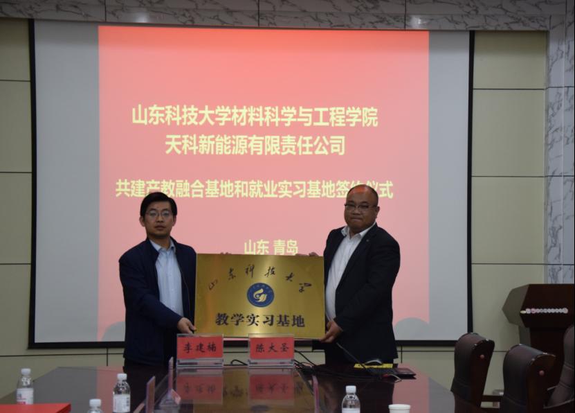 4月16日下午,买球官网与天科新能源有限责任公司在J2-434会议室举行产教融合基地和就业实习基地签约仪式。学院党委副书记兼副院长李建楠与天科新能源有限责任公司总经理陈大圣在共建科技研发、教学实习和就业基地协议书上签字,并为基地揭牌。签约仪式由李建楠主持。