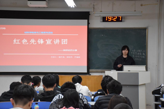 4月16日下午七点,买球官网于J3-106举行了保研经验分享,由金属2017-1褚文龙、材化2017-2栾桂芳、高分子2017-4尹淑君分享。