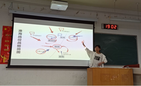 朱月明同志主要讲述了淮海战役战役经过以及其中这场战役所蕴含的具体革命精神,董颖同志宣讲内容为南昌起义具体经过和其历史意义,最后韩广扩同志对遵义会议的背景及意了义进行了宣讲,并对本场宣讲做了简要总结。