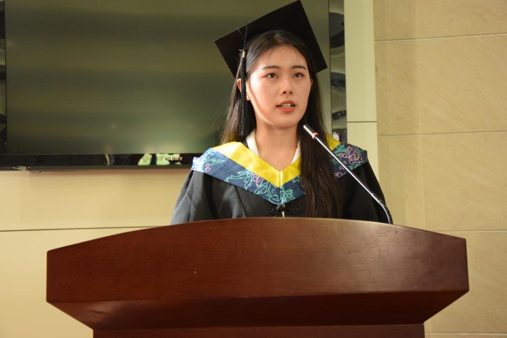 院长崔洪芝饱含深情地为全体毕业生送上了祝福,对他们圆满完成学业表示热烈祝贺。同时,她向即将踏上人生新征程的2021届毕业生们提出了四点期许:一是真诚善良、勇于担当、以善待人、以诚立业;二是笃学实干、知行合一、大道至简、实干为要;三是独立思考、勇于创新、抓住机遇、应对挑战;四是心存敬畏、行有所止、践行规矩、止于向善。