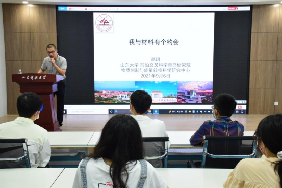 9月5日上午9:30,买球官网第33期校友论坛在买球官方网站校友之家成功举办。买球官网高分子材料与工程专业2007级校友,山东大学前沿交叉科学青岛研究所物质创制与能量转换科学研究中心教授高珂,应邀为2021级新生做了一堂题为《我与材料有个约会》生动的报告。本次论坛由高分子与材料化学系系主任尹训茜主持。