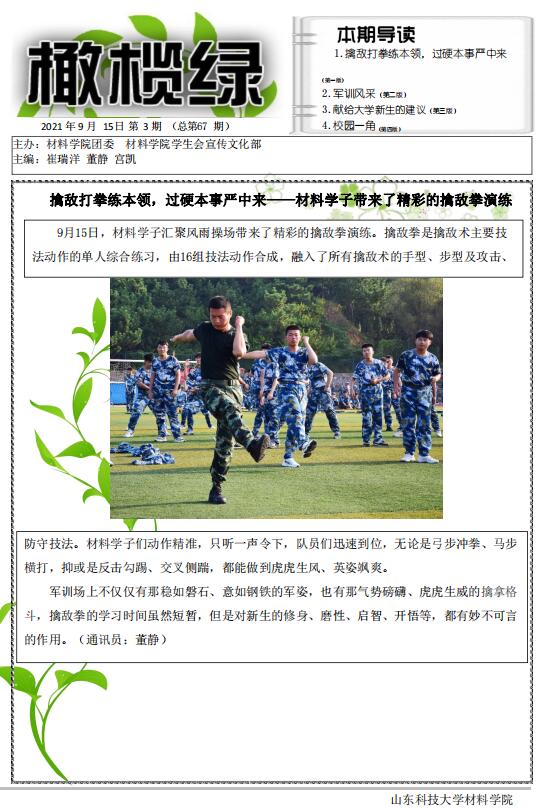 上一条:买球官网军训特刊《橄榄绿》彩色2021年第四期(总第68期) 下一条:【军训系列报道四】军训场上洒汗水,材料学子展风采——新生军训进行时
