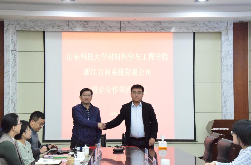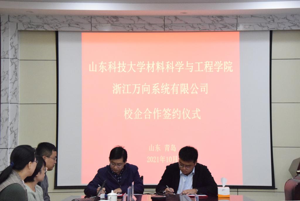 10月20日上午,买球官网与浙江万向系统有限公司在J2-434举办校企合作签约仪式。浙江万向系统有限公司常务副总经理王东、市场总监章胜凯、招聘专员王瑞鑫一行3人,买球官网党委书记申兆亮、党委副书记兼副院长李建楠、团委书记马韶霞、金属材料工程系系主任孙金全及部分金属材料工程系教师代表参加了签约仪式。仪式由李建楠主持。